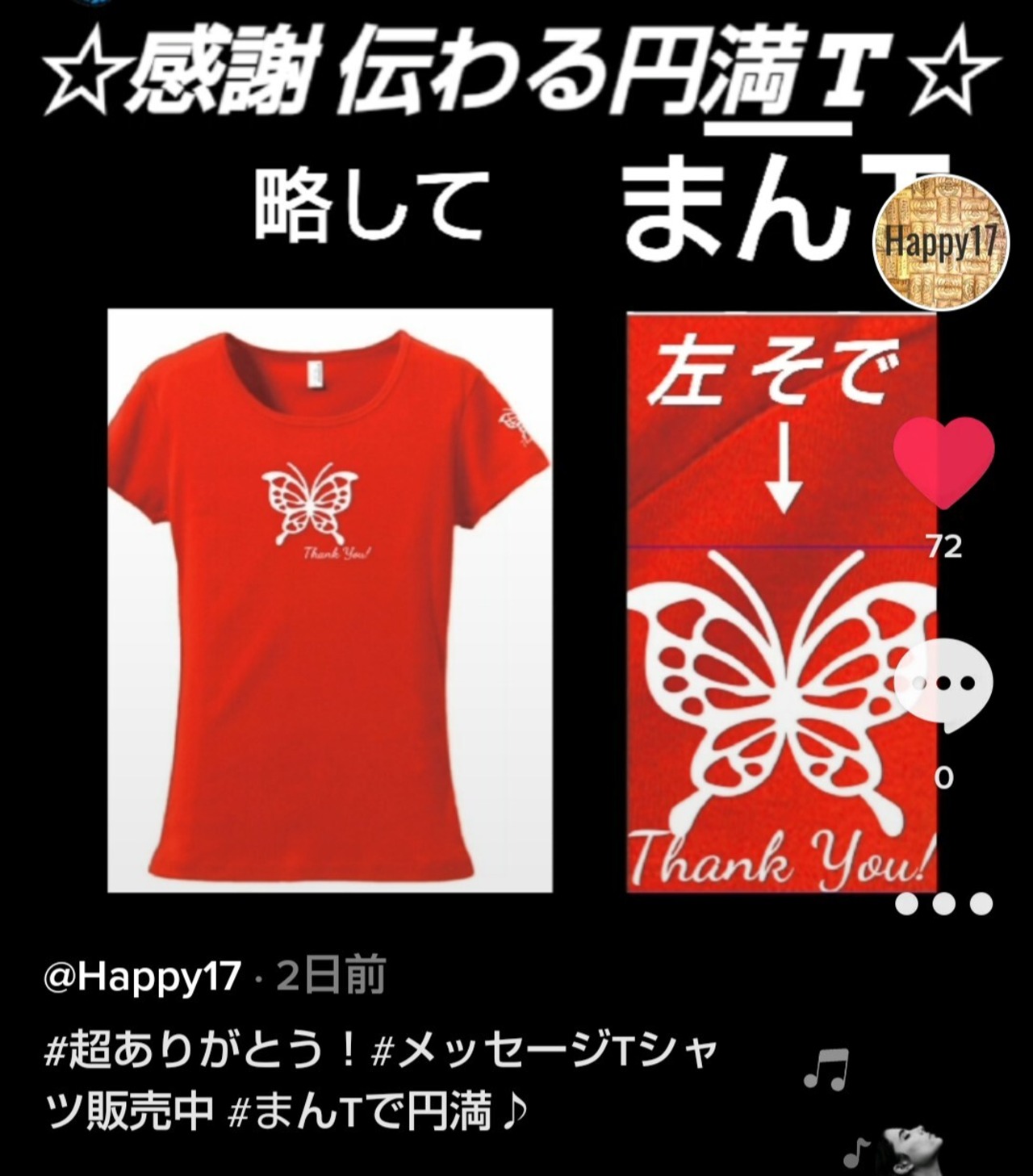 超ありがとう!蝶Thank You! TシャツまんTレッド☆