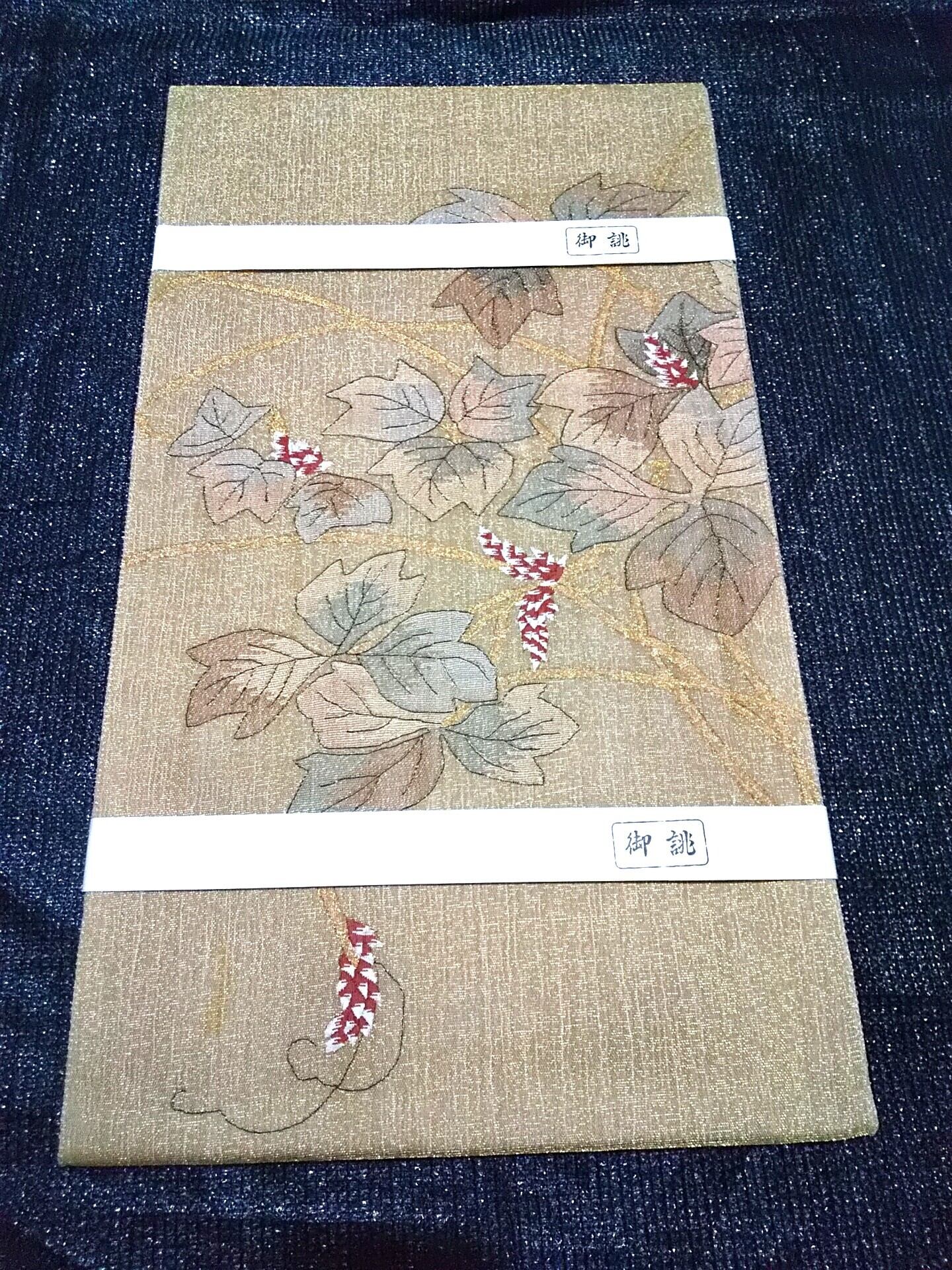 涼しげな生地 ゴールドでお祝いの席に向いています。二重太鼓に締めると素敵です☆