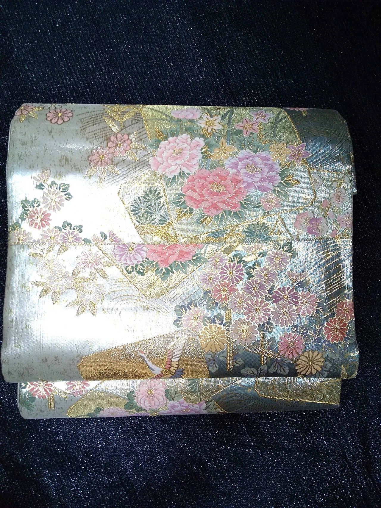 優美寿彩 献上春秋色紙文 西陣織 正絹袋帯