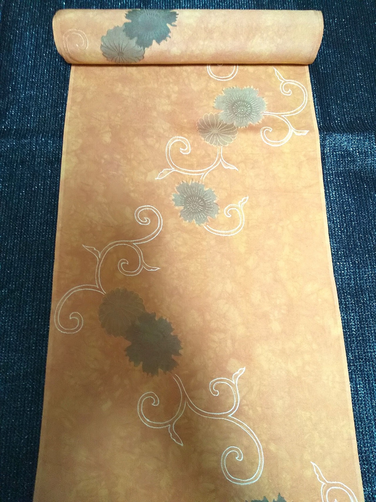 華弥美 加郡良 オレンジ花模様 シルク羽尺