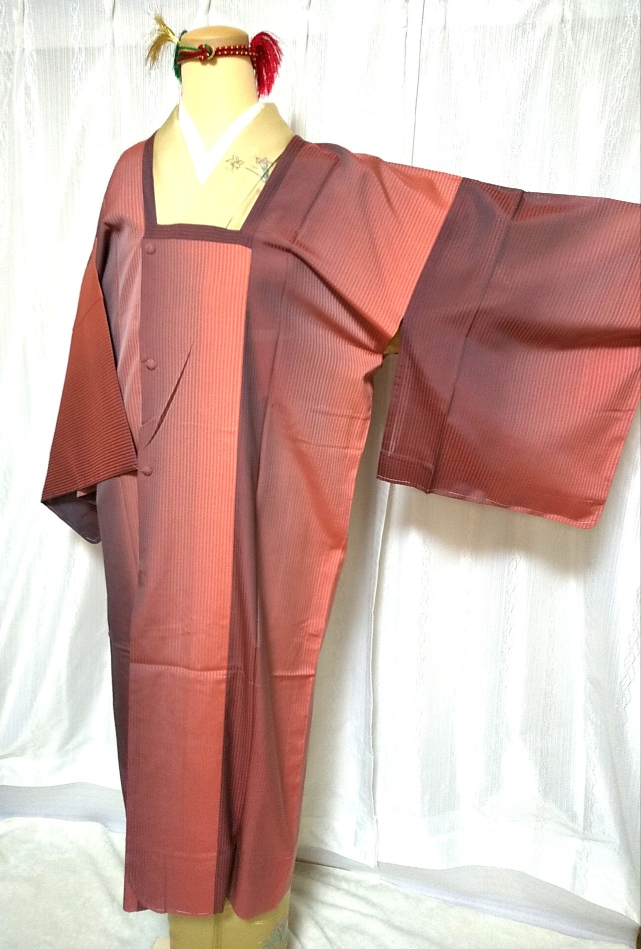 着付けは シワにならないように、おはしょりを作らず対丈で着付けました。