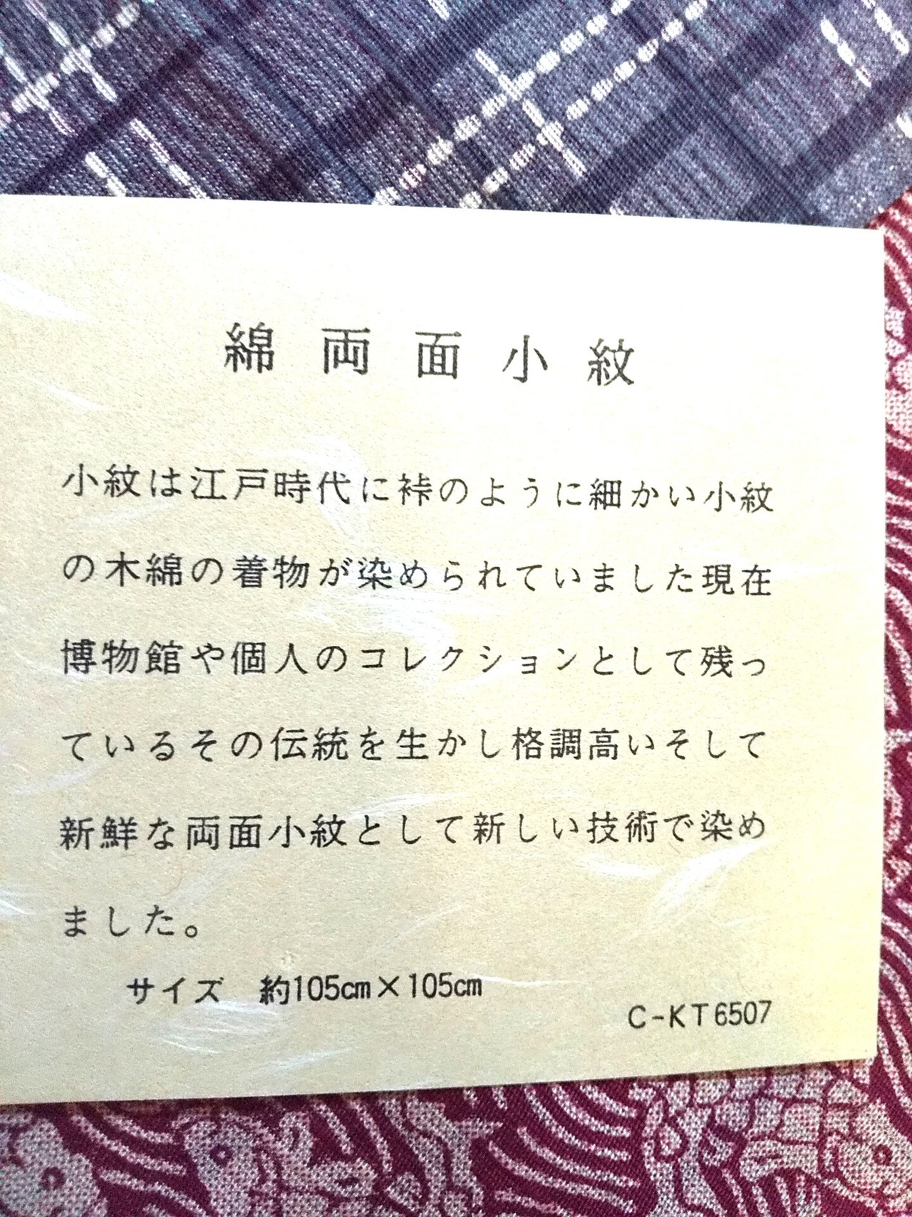 105cm×105cmの大判サイズ