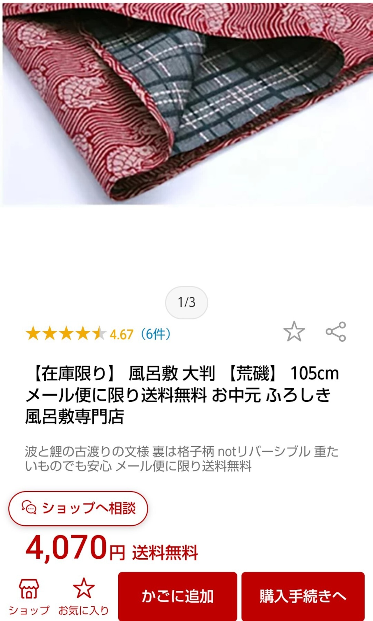 両面 染物 鯉柄 小紋の大判 京 風呂敷
