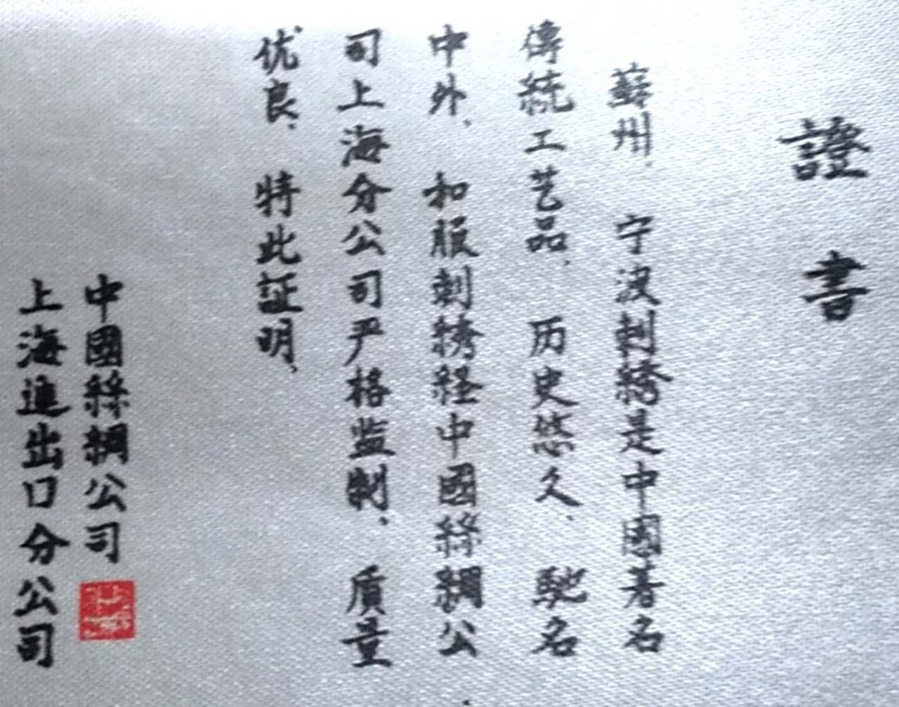 中国伝統工芸 刺繍 黄金色 賞状付き