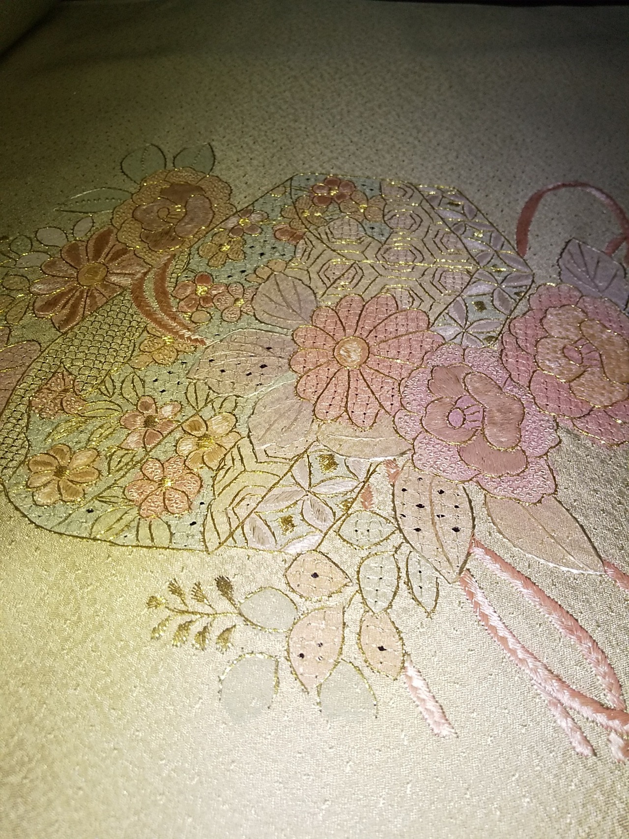 刺繍入り黄金色の高級反物☆可愛い反物☆美しい反物☆大特価