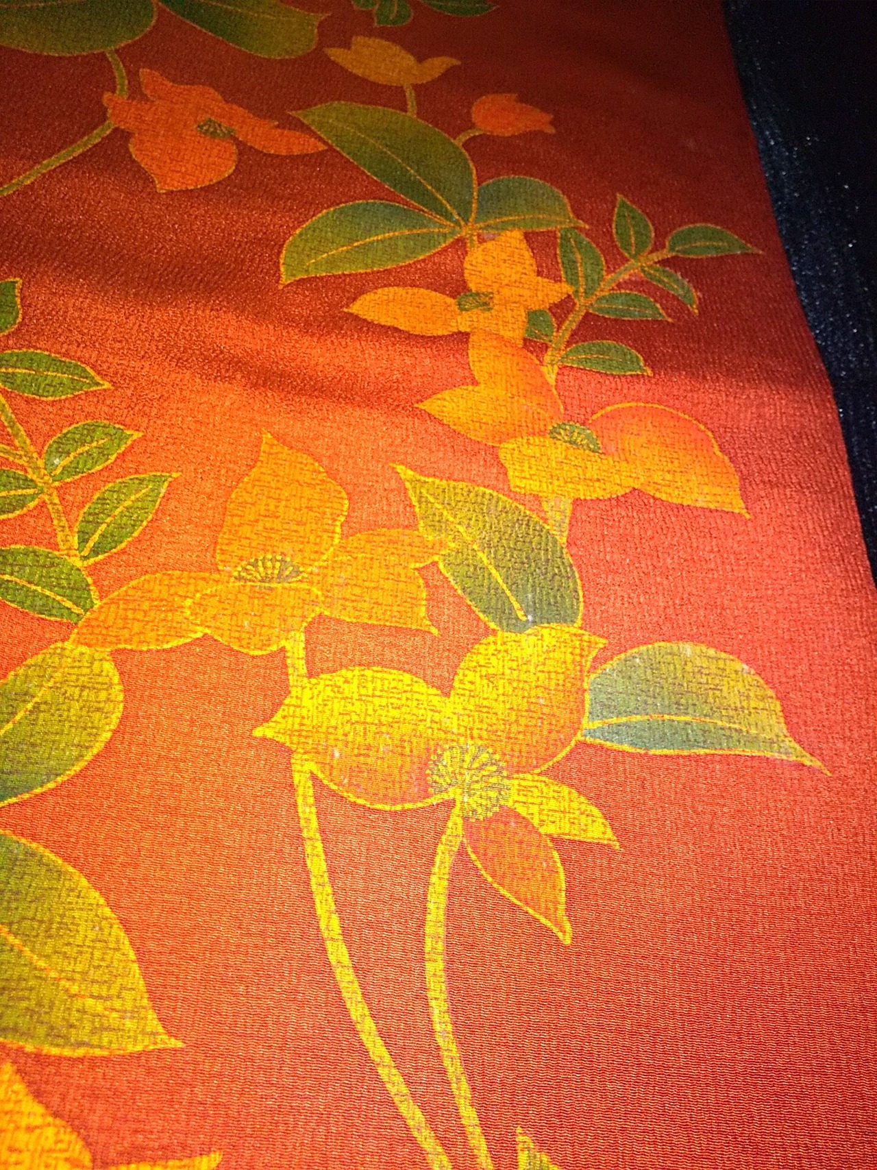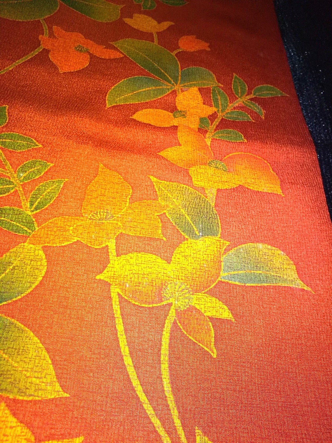反物☆オシャレな草花柄☆オレンジレッドの染めもの