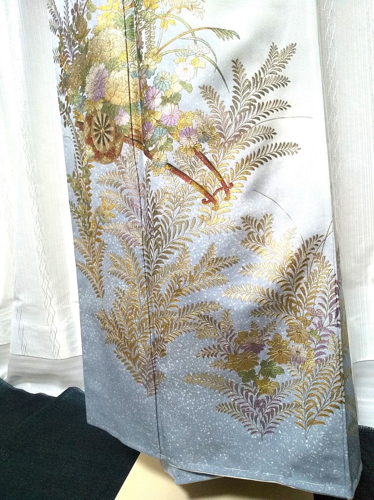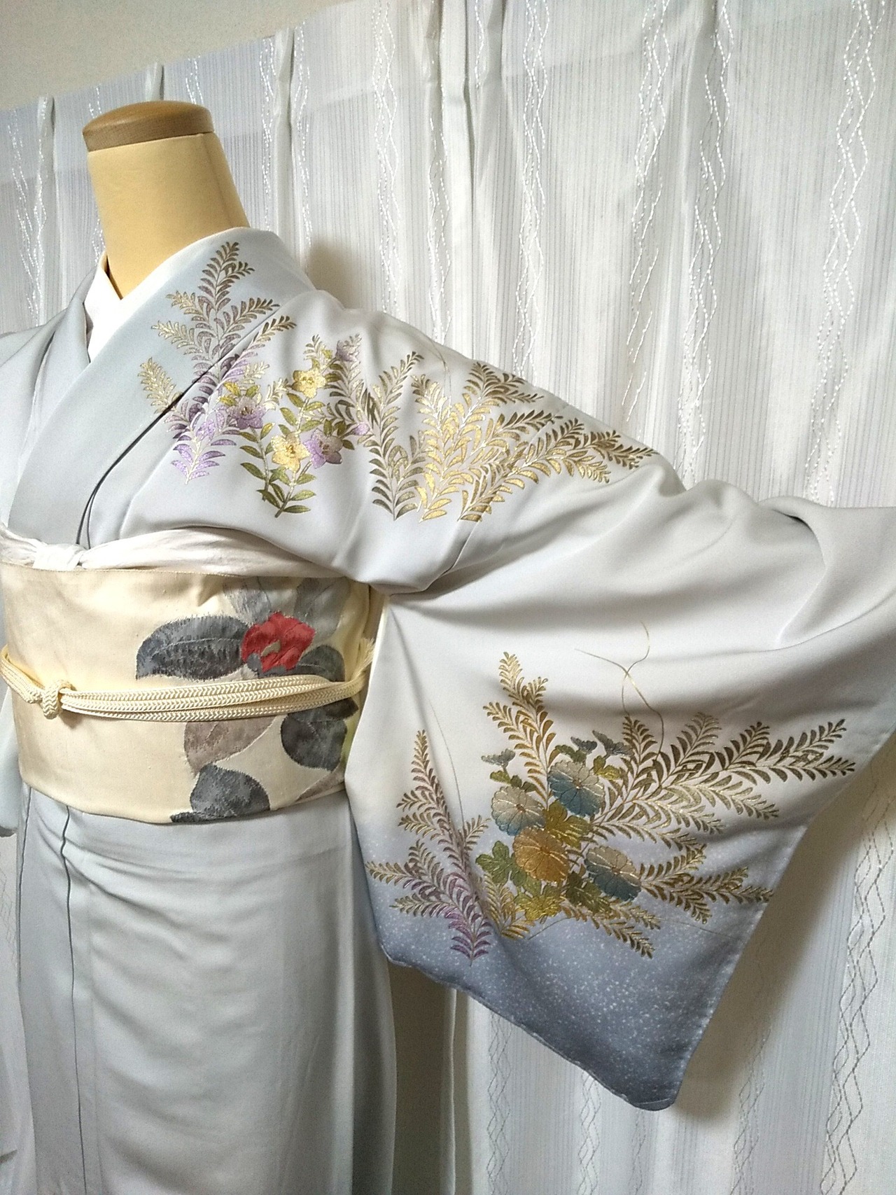 清楚な雰囲気の訪問着☆新品 正絹 大特価☆涼しげな水色ゴールドリーフと花柄