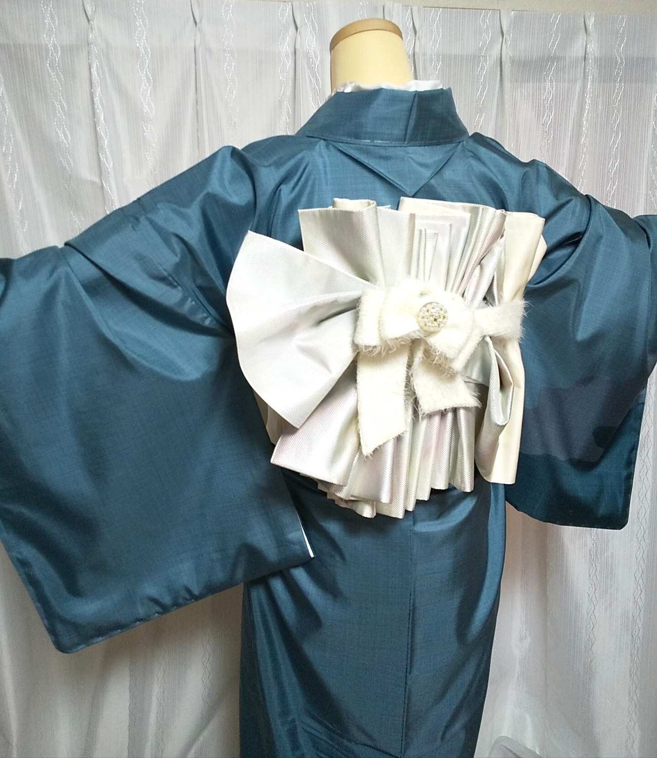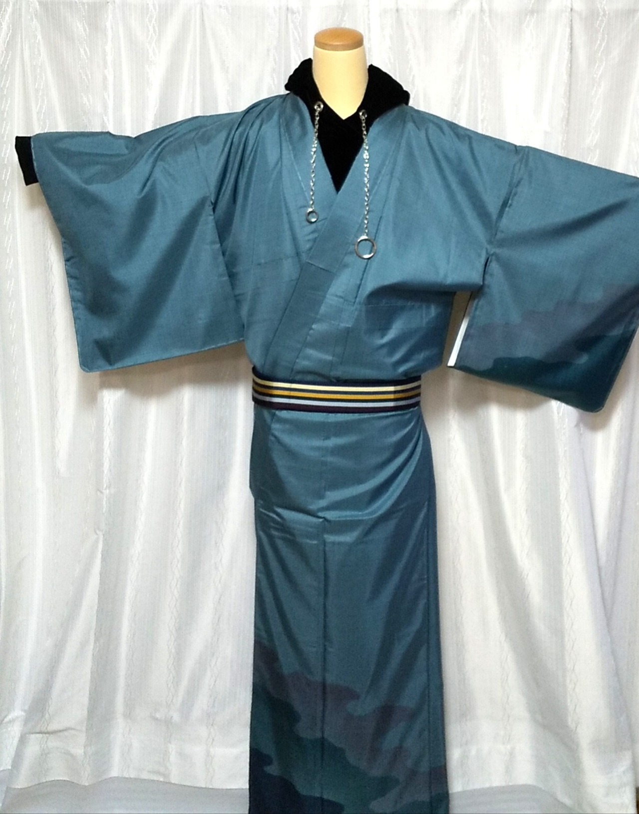 新品☆正絹☆艶ブルー男女兼用お着物☆
