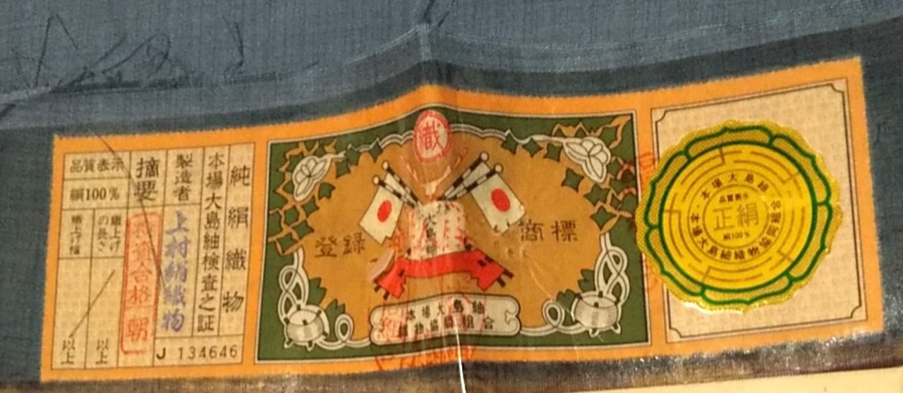 新品 正絹 ブルー 男女兼用お着物 本場大島紬 大特価