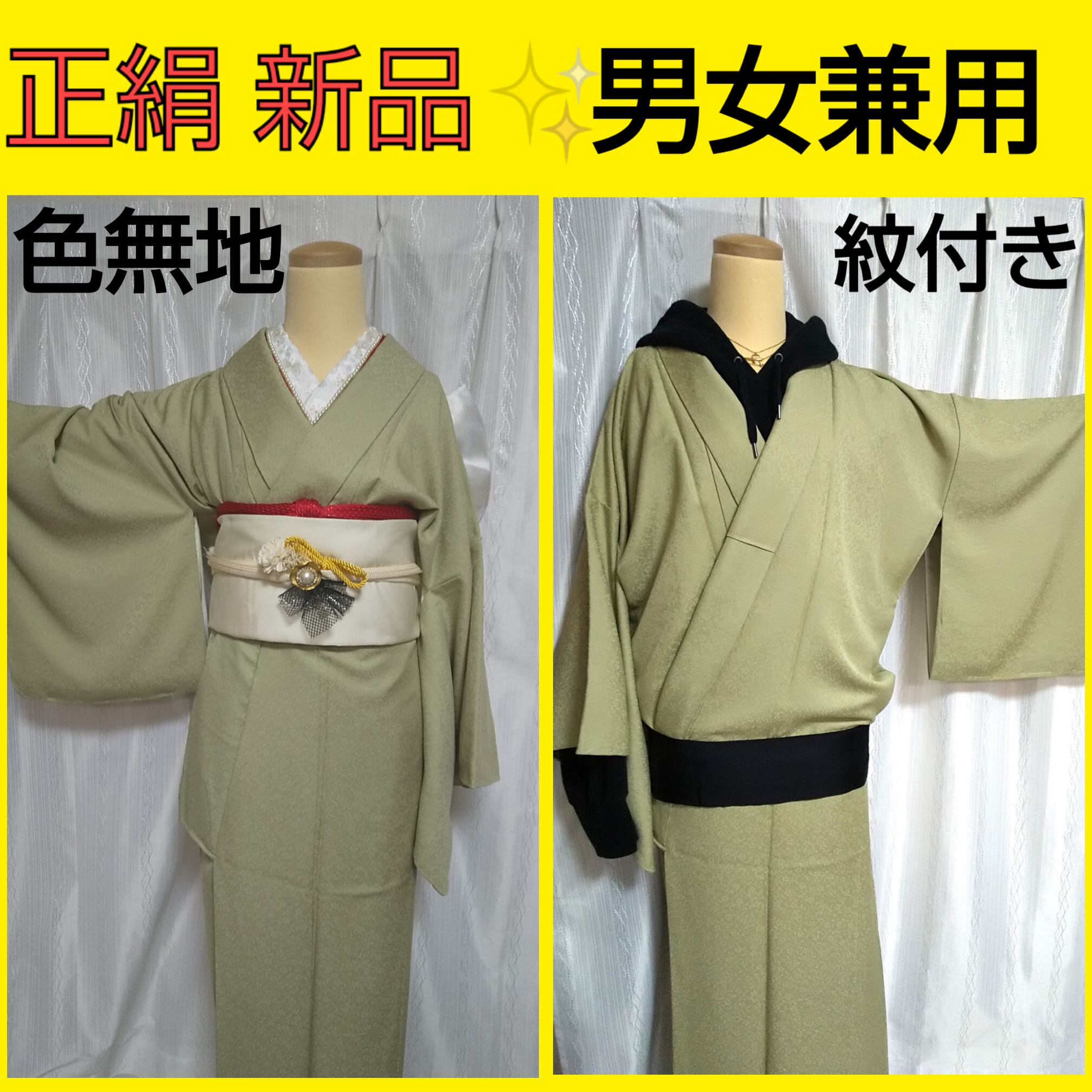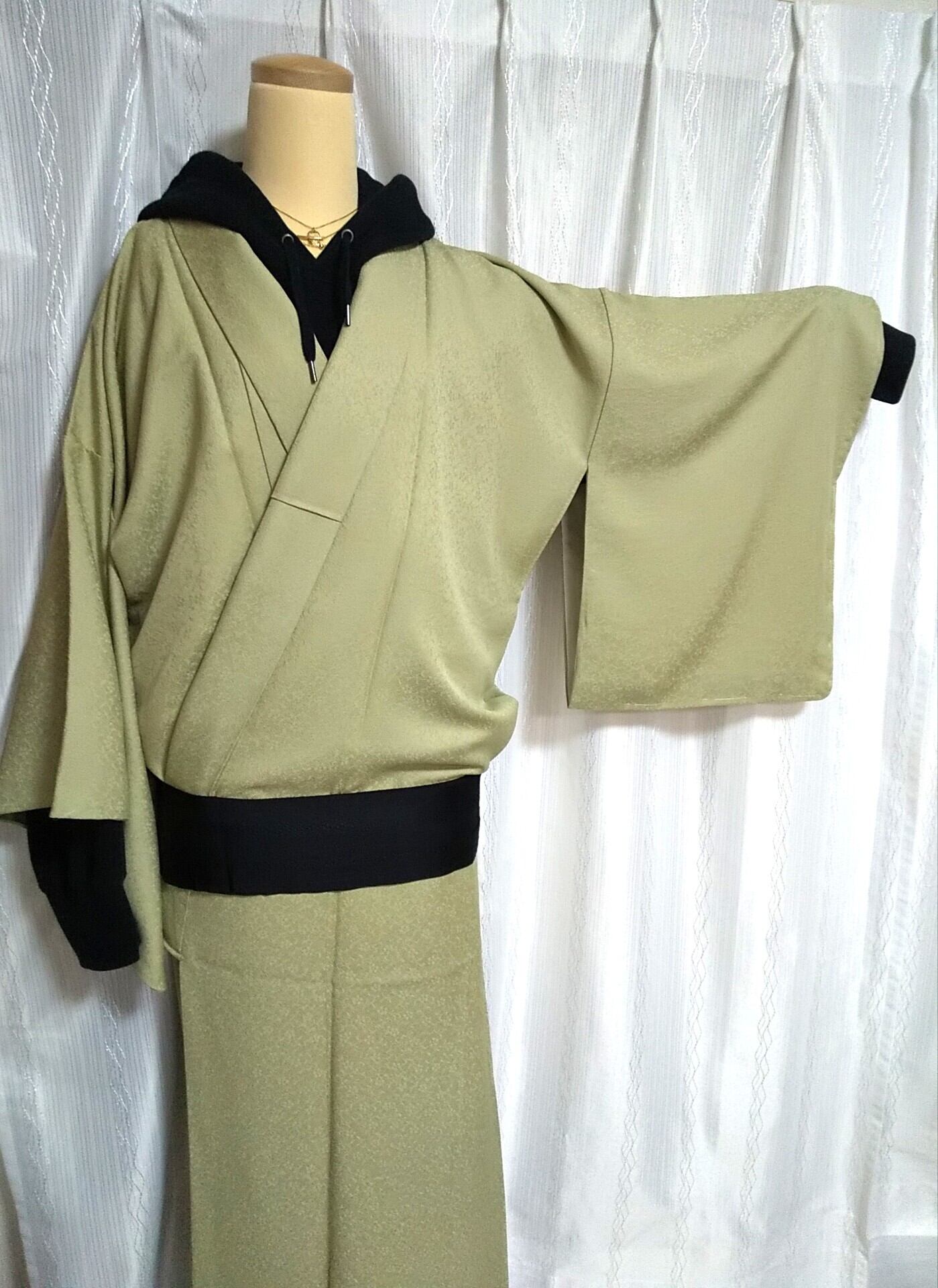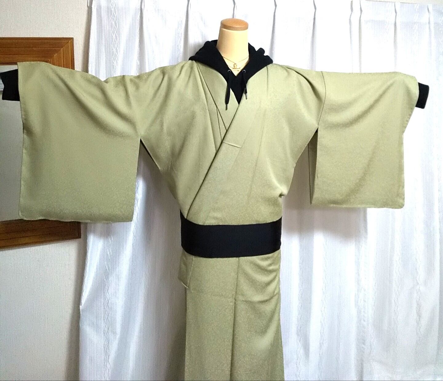 色無地 1つ紋 正絹ちりめん グリーン袷のお着物