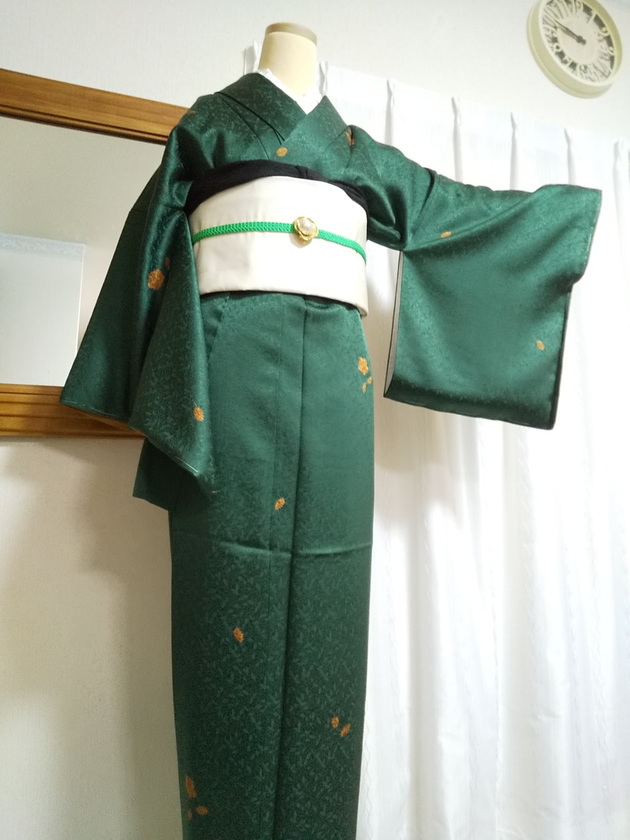 #正絹 #小紋 #新品 #訪問着 #絞り花柄 #深緑 #豪華粗品プレゼント #HAPPY17着物はこちら