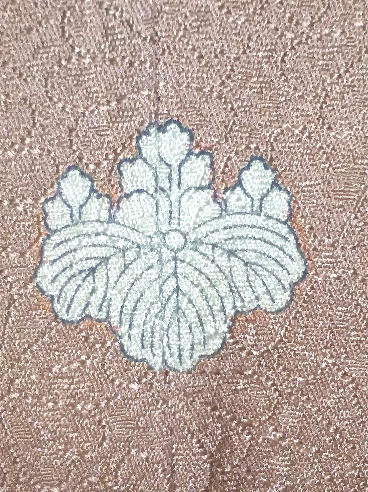ピンク色無地 正絹ひとつ紋 桐紋 菊花地柄小紋の可愛いお着物
